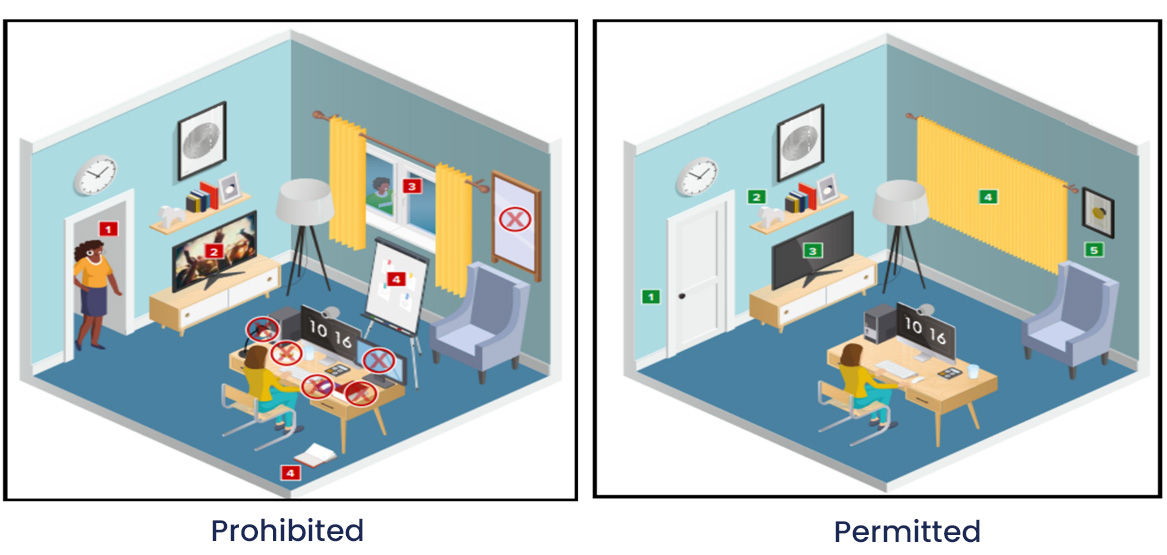 Your desk must be setup in a way that meets the rules and regulations of the exam:
